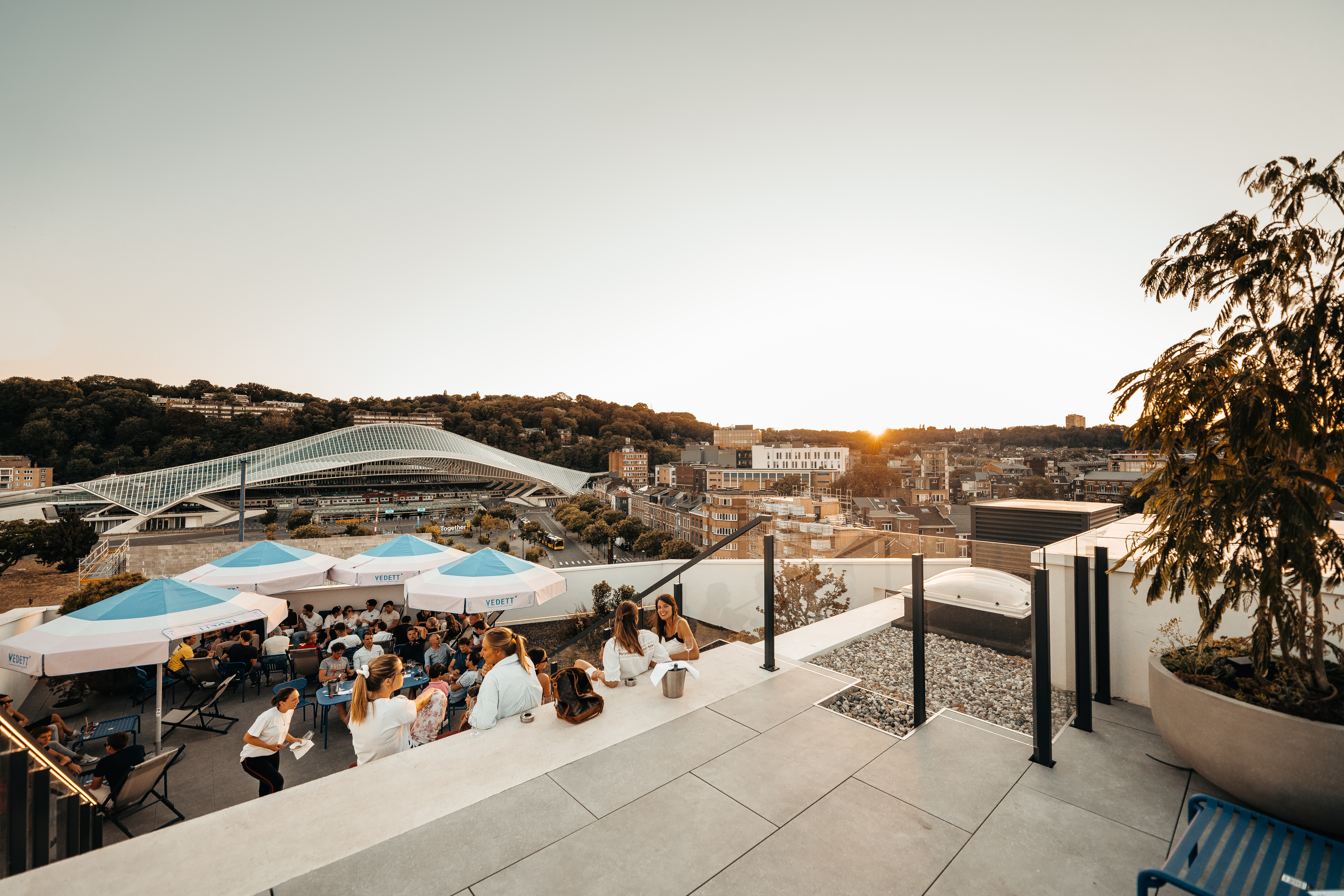 Welkom op jouw favoriete zomerplek in Luik! De bar op het dak is de plek voor een cocktail en wat eten in de zon. En dat kan allemaal met een ongelooflijk uitzicht op Luik-Guillemins.